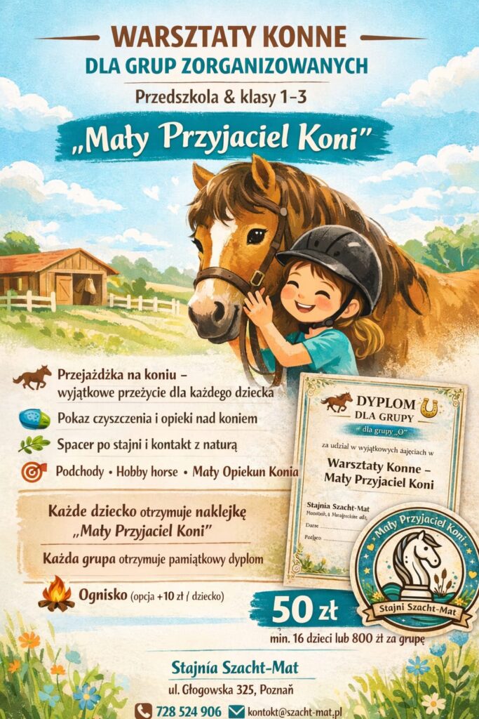 Stawiamy na czas, w którym dzieci nie tylko jeżdżą konno, ale też poznają konie, uczą się podstaw opieki i spędzają czas na świeżym powietrzu.